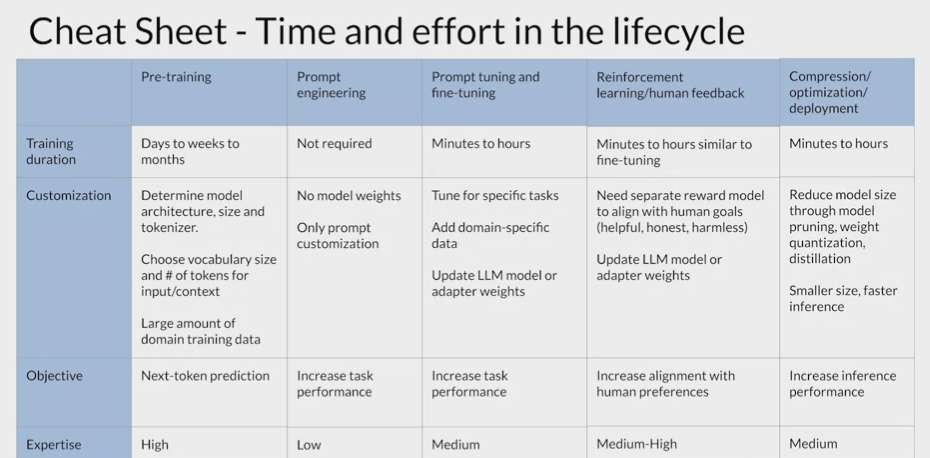 - Depending on the use case, performance goals, and compute budget, the methods could range from full fine-tuning to parameter efficient fine tuning techniques like laura or prompt tuning.