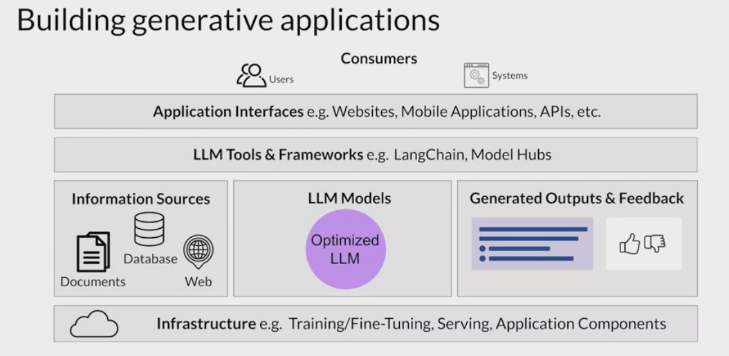 This layer provides the compute, storage, network to serve up the LLMs and host the application components.
