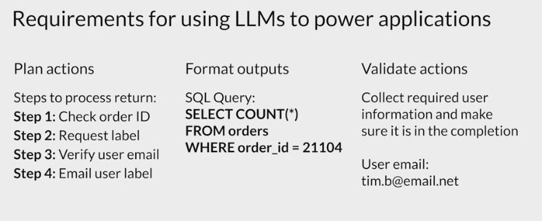 In order to trigger actions, the completions generated by the LLM must contain certain important information.