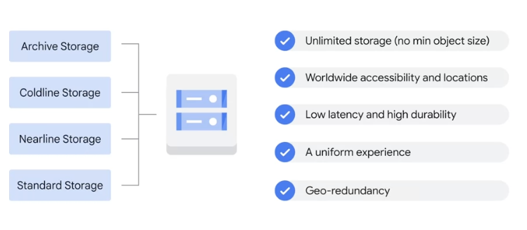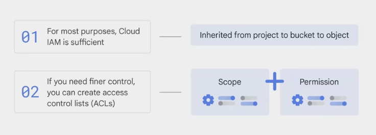 - Cloud Storage is comprised of buckets and configure and use to hold the storage objects.