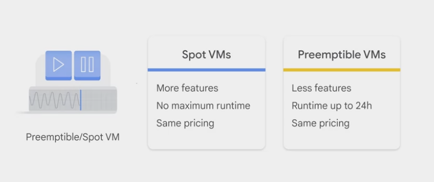 - cost less per hour but can be terminated by Google Cloud at any time.