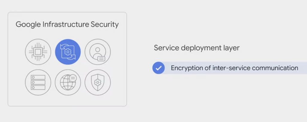 - The Service deployment layer focuses on encryption of inter-service communication.