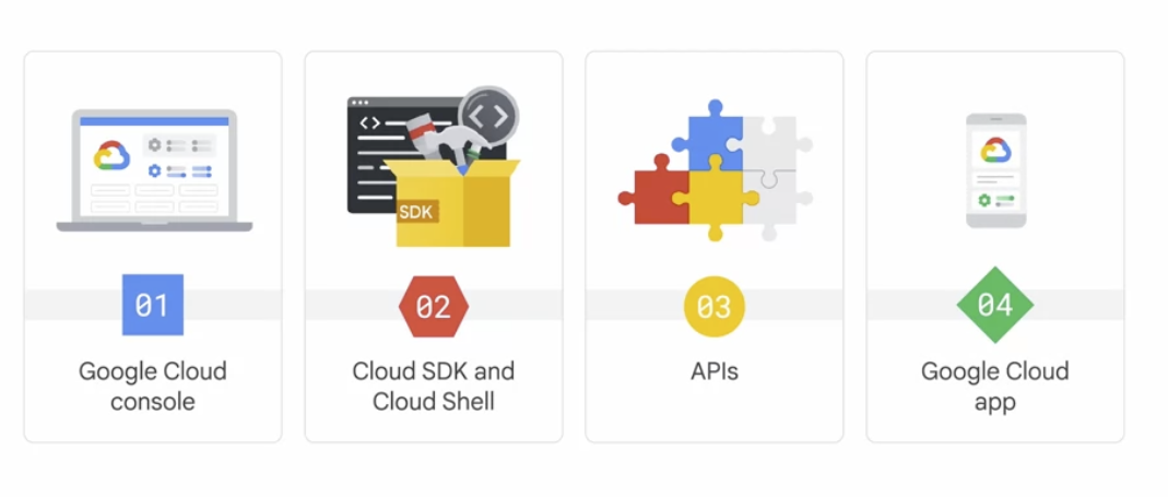 gcloud: Compute Engine, Google Kubernetes Engine (GKE) and many Google Cloud servicesgsutil: Cloud Storagekubectl: GKE and Kubernetesbq: BigQuery