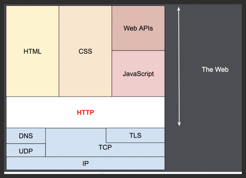 - HTTP is on top, at the application layer, the underlying layers are mostly irrelevant to the description of HTTP.