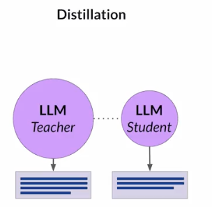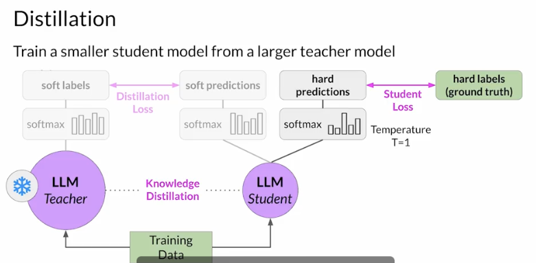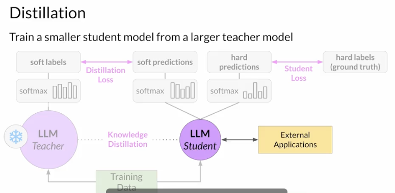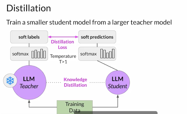 - with Distillation, you’re training a second, smaller model to use during inference.