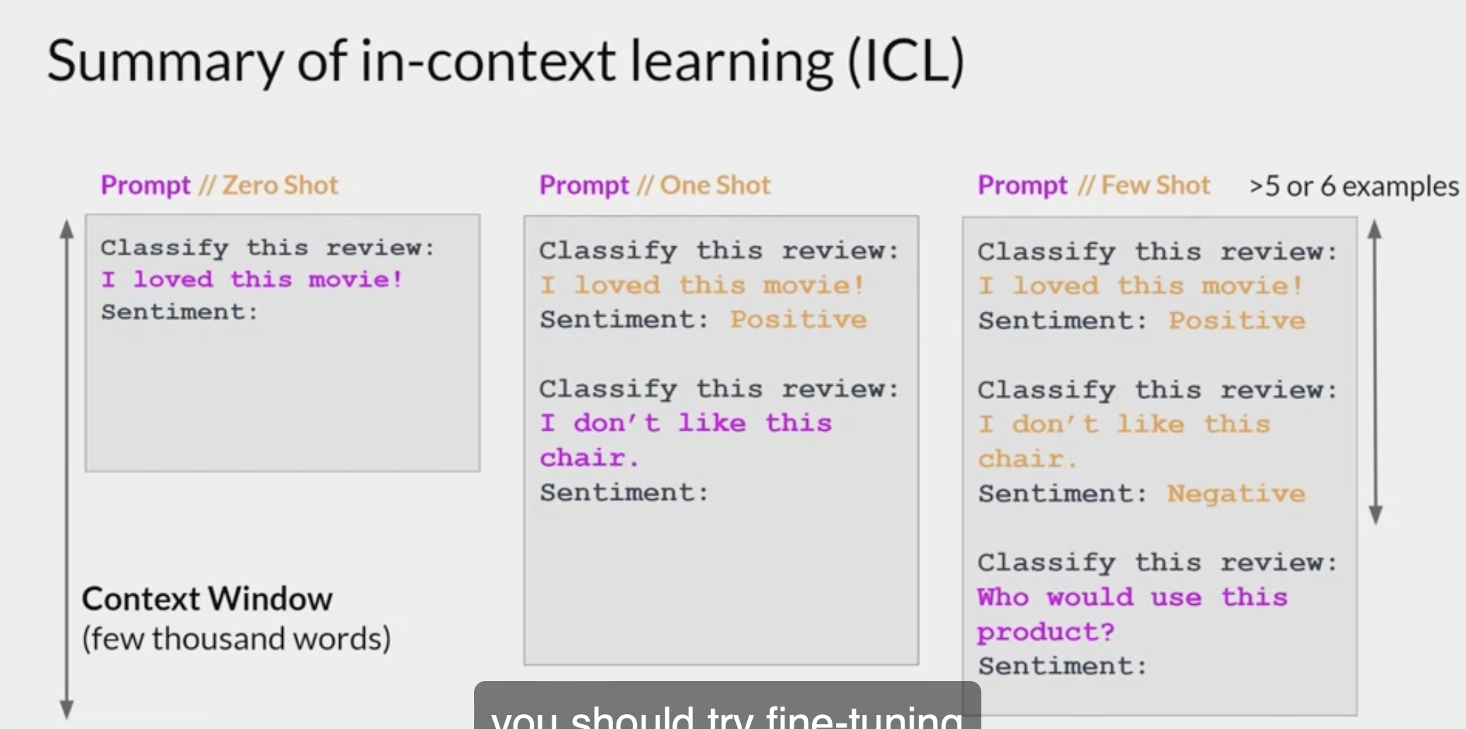 - Instruction fine-tuning updates model weights using labeled datasets, whereas in-context learning uses examples during inference.