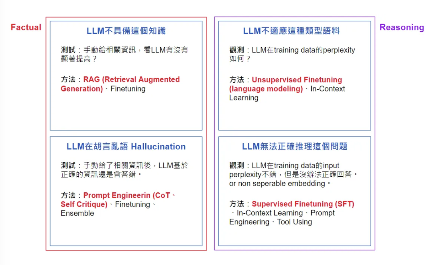 通常來說,LLM 會失敗主流會有 4 種原因,兩種大的類別: