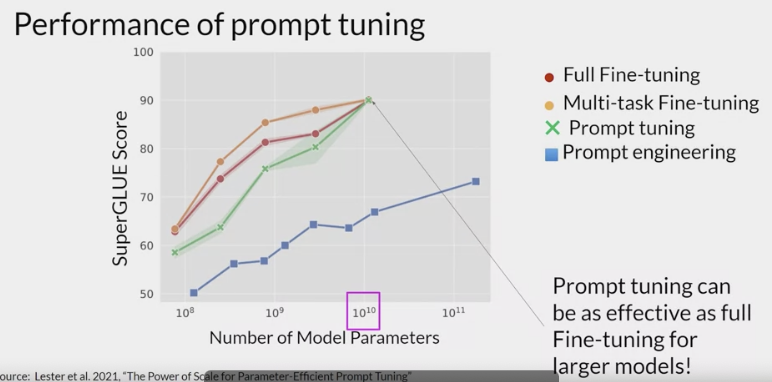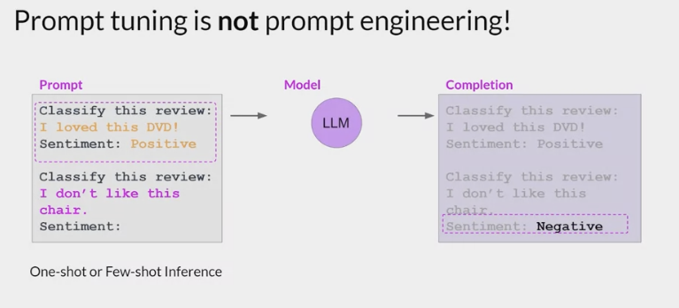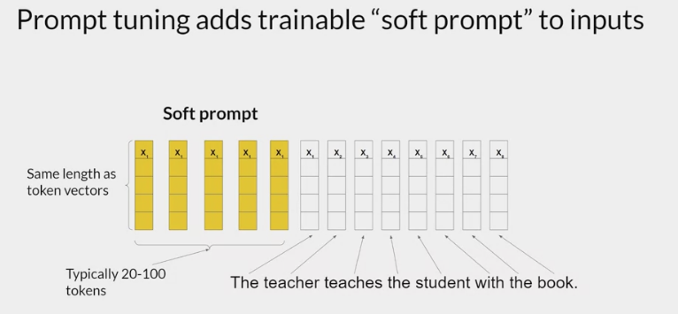 - Prompt tuning adjusts only a few parameters (tokens), not all hyperparameters of the model.