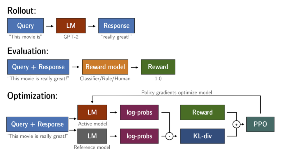 - 基于人类反馈的强化学习微调 $LLM^{RL}$ (reinforcement-learning)